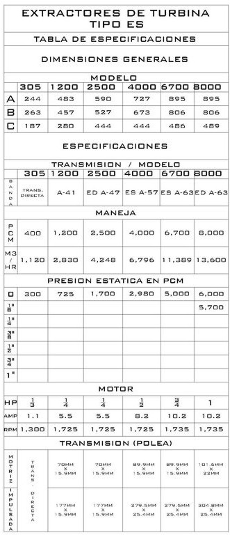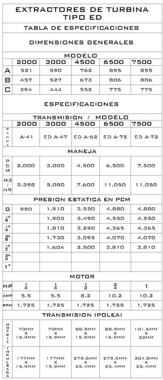 TABLAS DE DIMENSIONES Y POSICIONES DE TURBINA DOBLE