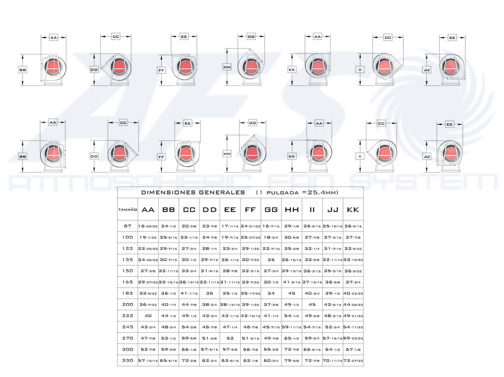 posiciones de descarga, ofreciendo la gama de los ventiladores