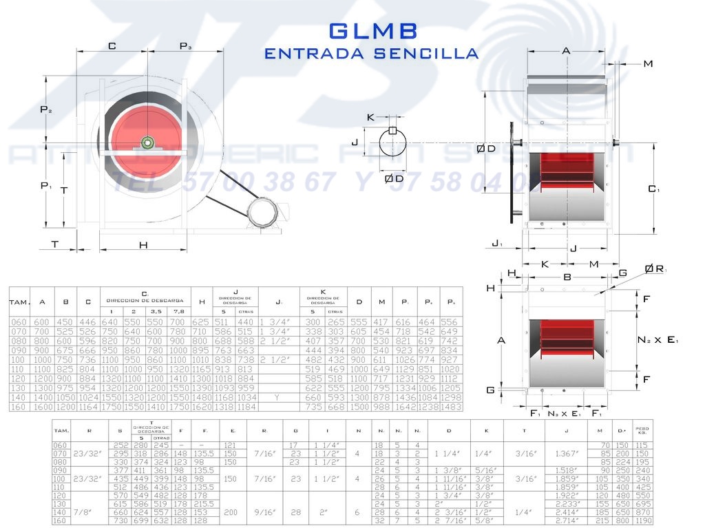 DIMENSIONES CENTRIFUGO GLMB-3 ENTRADA SENCILLA