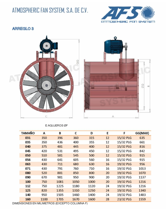 Se fabrica del tamaño040 al 160. Este arreglo puede manejar gses con temperaturas hasta de 150°C.
