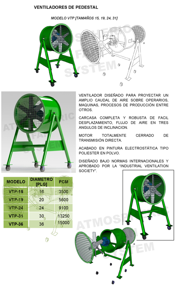 ● Diseñado para proyectar un amplio caudal de aire sobre operarios, máquinas, procesos de producción, etc.